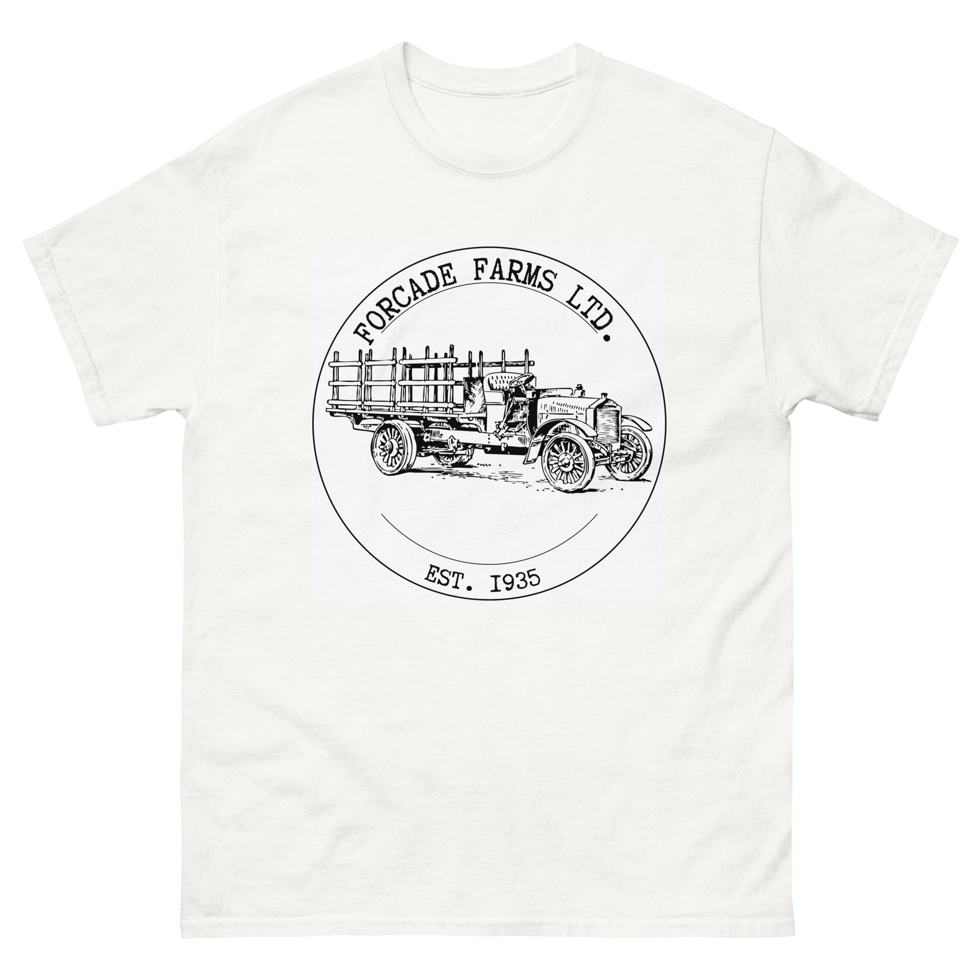 Image 1 of 5 Image 2 of 5 Image 3 of 5 Image 4 of 5 Image 5 of 5 Classic white tee from $35.50 Nothing better than a fresh white tee, except a Forcade Farms one! • 100% cotton Size: S M L XL 2XL 3XL 4XL 5XL Add To Cart Added! Nothing better than a fresh white tee, except a Forcade Farms one! • 100% cotton